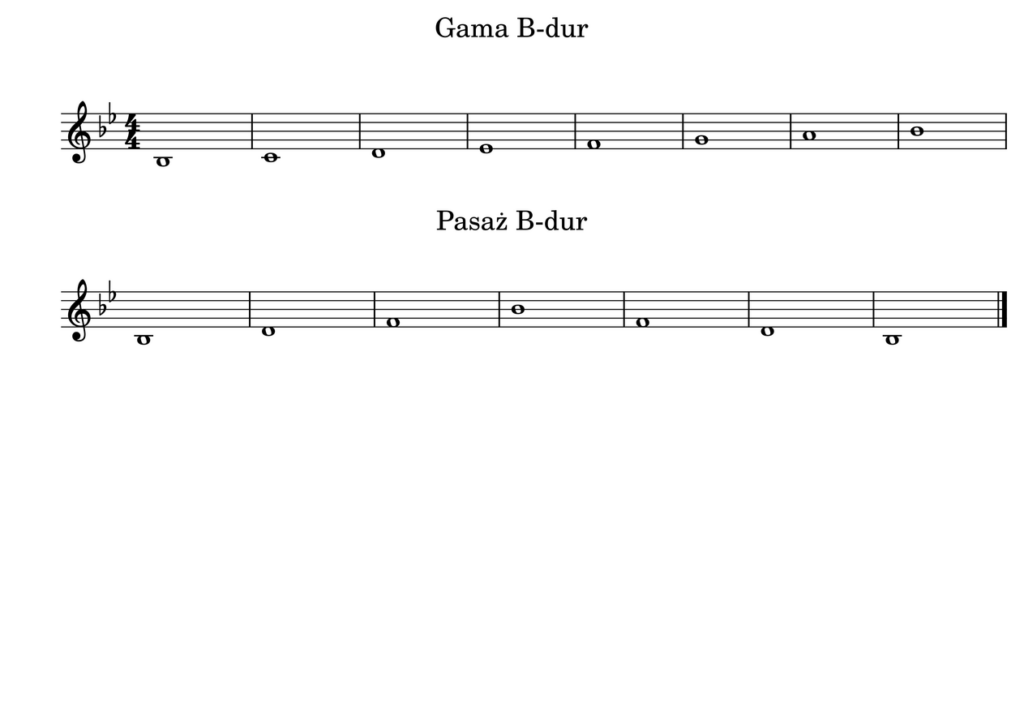 Gamy B-dur i g-moll najczęściej stosowane są w przypadku marszów oraz tang, ale zdarzają się też w walcach czy fokstrotach. Z uwagi na niewygodny dźwięk Es (kryty w dolnym rejestrze tłokami drugim i trzecim), sprawia pewne trudności, ale za to pozwala operować w wygodnej, nisko osadzonej skali.