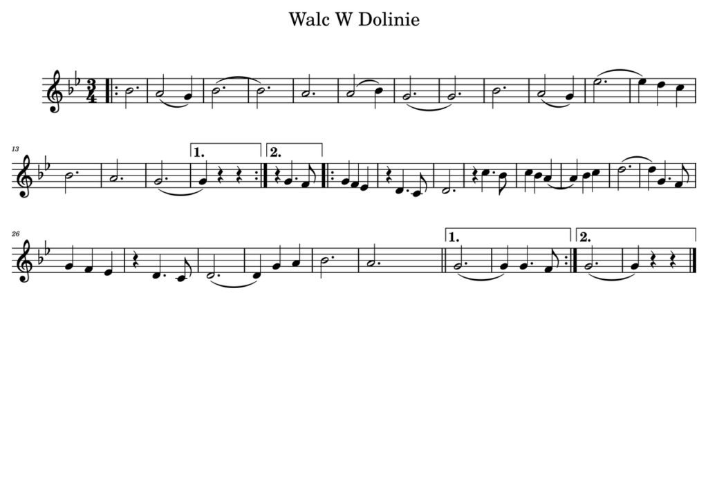 20. Walc W Dolinie – rzewny walc wykonywany przez Orkiestrę Dętą Zaburze (pierwszy utwór w ich starych książeczkach z repertuarem tanecznym).
