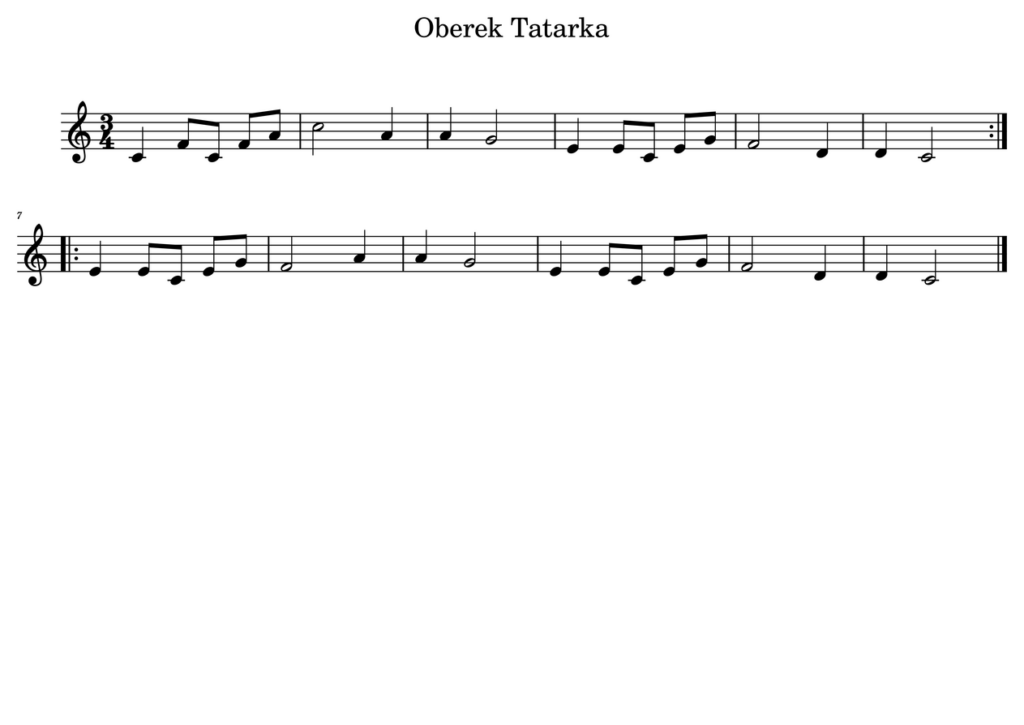 5. Oberek Tatarka – grany jako oberek przejazdowy w wolniejszym tempie lub taneczny, a niekiedy i oczepinowy oberek w szybszym tempie. Znany z repertuaru nieistniejących Orkiestr Dętych z Żabna i Sułowca