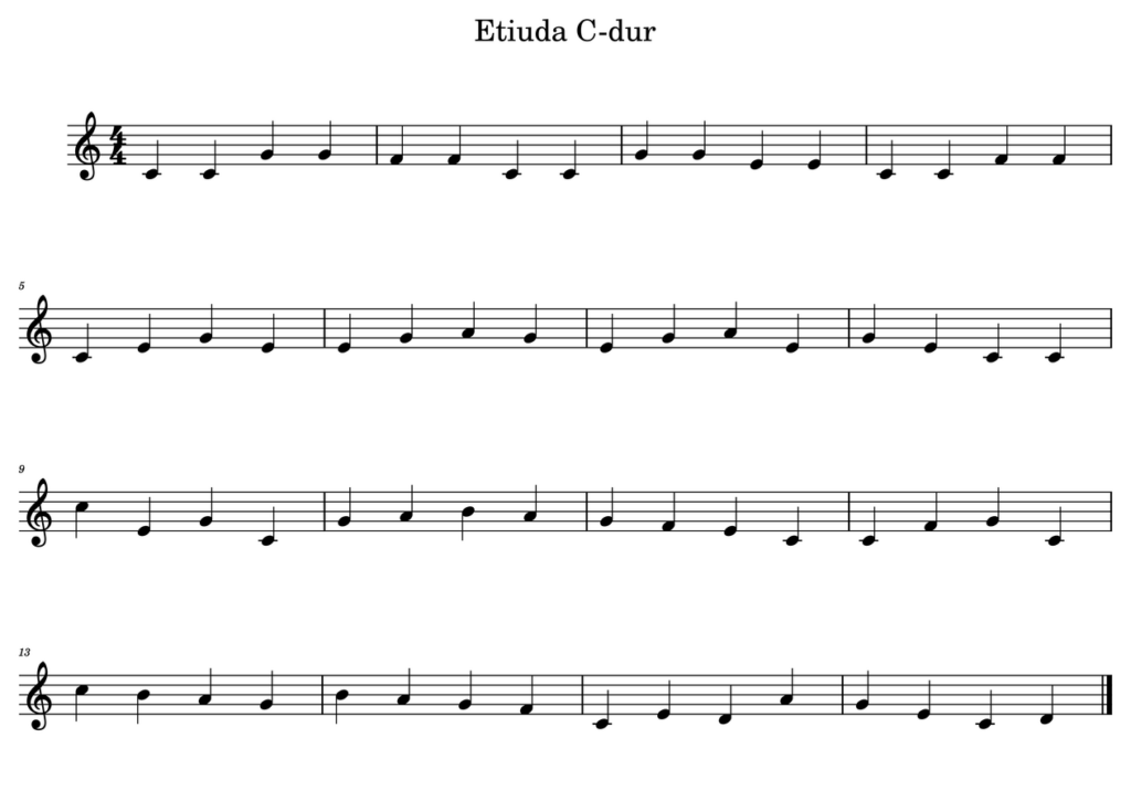 7. Na koniec prosta etiuda oparta na gamie C-dur, której fragmenty są oparte na melodiach z tej gamy