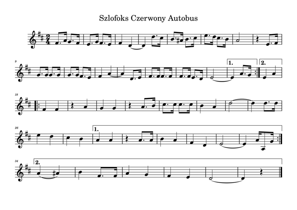 57. Szlofoks Czerwony Autobus – znany, powojenny polski przebój, grany w tempie swingowego, wolnego fokstrota. Opracowanie z repertuaru Orkiestry Dętej ze Zdziłowic